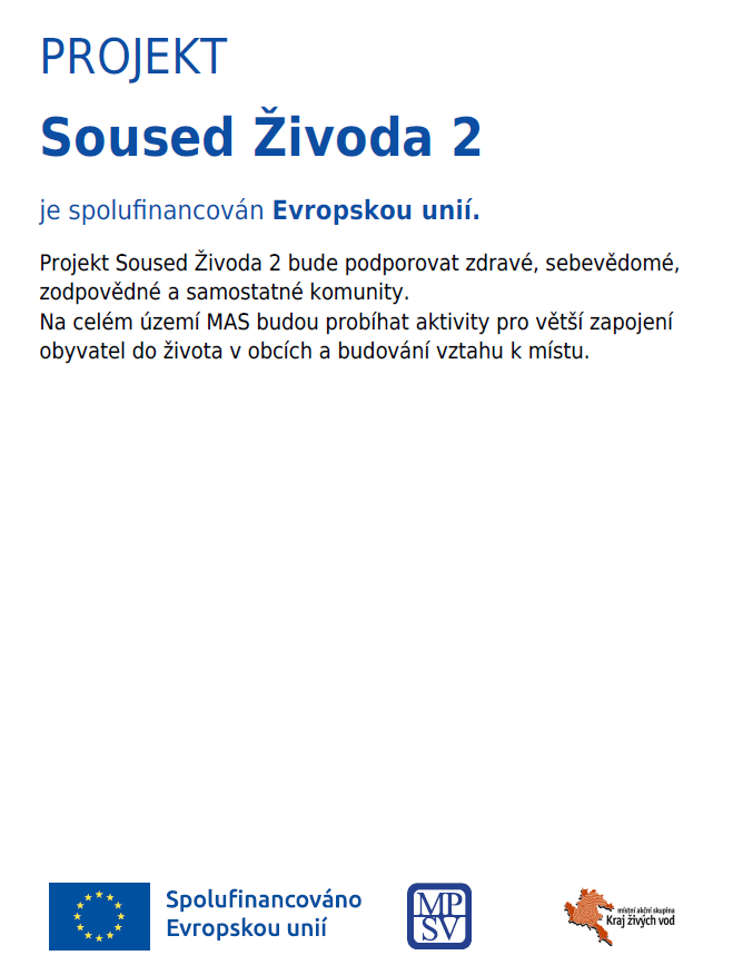 Projekt Soused Živoda 2 bude podporovat zdravé, sebevědomé, zodpovědné a samostatné komunity.